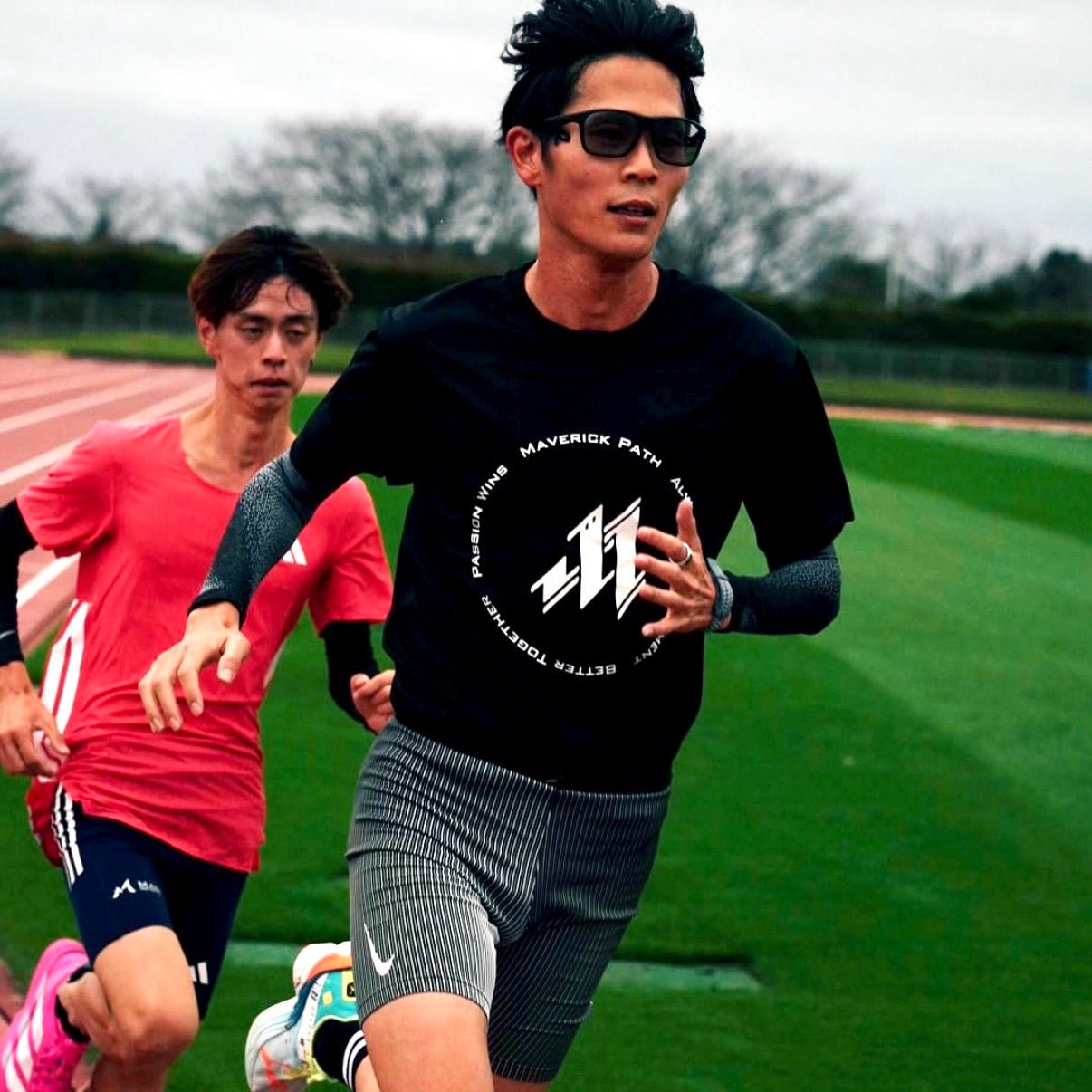 MABPマーヴェリックランTシャツ。ドライ生地ならではの吸水速乾機能、紫外線からの保護機能(UPF50)もついていて、着心地のいいランニングTシャツです!マーヴェリックの選手たちもポイント練習や普段着として着用しています!ぜひ選手たちとお揃いのTシャツで走りましょう!